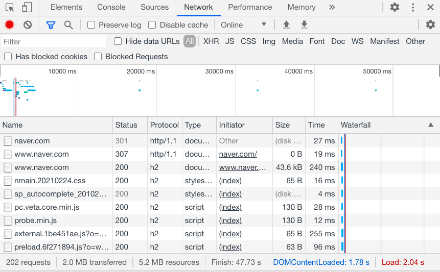 HTTP에 대해서 강의를 듣는 중인데 무지했던 Network 지식을 채워가는 느낌이라서 참 좋다 🤩 개발자 도구에서 알아볼 수 있는 탭이 하나 더 늘었으니 앞으로 중간중간 확인해보는 습관을 가지자!!