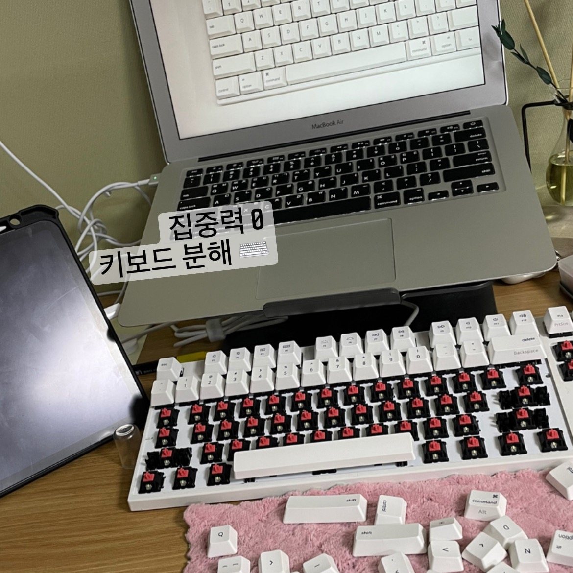 진짜 집중이 너무너무 극악으로 안 되는 날이었다. 이런 날은 좀 쉬어야 한다던데... 괜한 불안감에 쉴 수는 없고 깨작깨작 공부했던 것 같다. 그러다가 또 너무 졸려서 키보드 분해해서 하나하나 다 닦고!!!! 자판 헷갈려서 찾아서 다시 조립하고!!! ⌨️⌨️⌨️