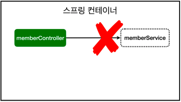 - memberService와 memberRepository가 스프링 컨테이너에 스프링 빈으로 등록되었다.
