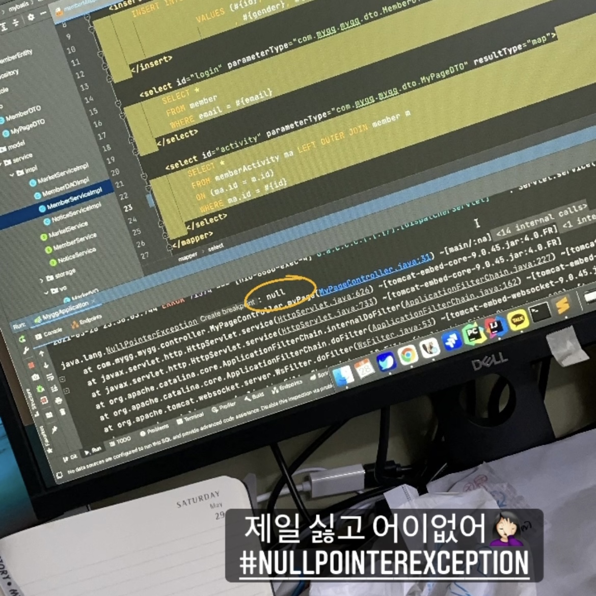๋๋ฆ๋๋ก ๋ฐ์ ์ด ์๋ ํ๋ฃจ๋ฅผ ๊ธฐ๋ถ ์ข๊ฒ ๋ง๋ฌด๋ฆฌํ๋ ค๊ณ ํ๋๋ฐ ๋ ๋ค๊ฐ ์ ์ผ ์ซ๋ค... Nullpointersxceiption ์ ๋ฆฌ ๊ฐ ์ ๋ฐ๐๐ป