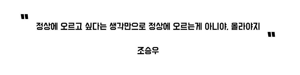 정상에 오르는게 아니야, 올라야지 <span class="qmark close-qmark">“</span>