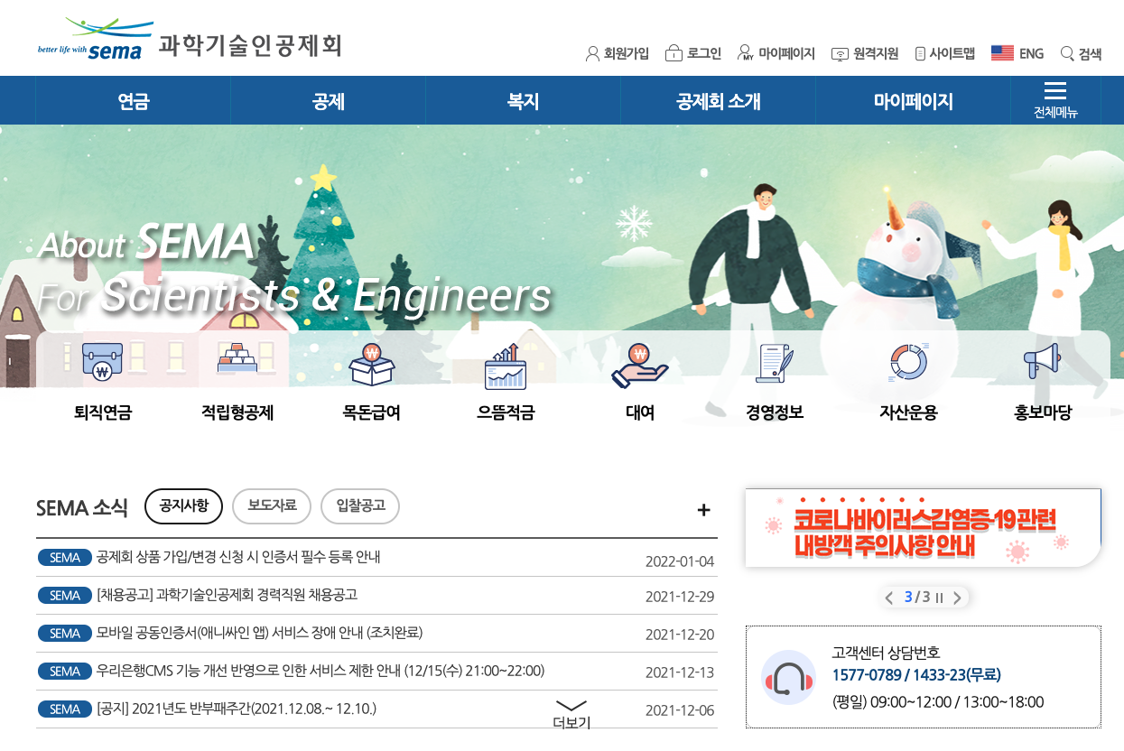 [재테크] 과학기술인으뜸적금 가입 과학기술인공제회는 과학기술인의 생활안정과 복지 증진을 도모하고 아울러 과학기술활동을 활성화하며 과학기술 분야의 국가경쟁력 제고에 이바지하는 목적을 위해 2003년에 설립된 곳이다. 혜택을 받을 수 있는 으뜸적금을 알아보자! 1. 검색 포탈에 과학기술인공제회를 검색 후 홈페이지에 접속합니다. 2. 메인 홈페이지에서 으뜸적금을 클릭하면 사업안내 및 상품에 대한 금리 등 가입 방법에 대해서 살펴볼 수 있습니다. 적금을 가입할 때 제일 중요한 "가입 대상"은 우리회사 검색을 통해서 확인할 수 있습니다. 본인이 다니는 회사명을 검색했는데 회사명(연구소명), 사업자번호/등록번호, 가입자격구분, 협약여부를 조회 할 수 있다면 가입이 가능합니다. 만약, 조회가 되지 않는다면 해당 상품은 가입이 불가능합니다. 금리는 기.. CodeSiri/life & information 2022.01.11